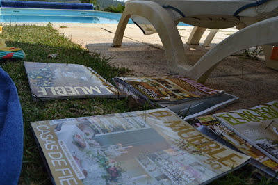 Ontem passei grande parte da tarde, junto à piscina, a vasculhar as ultimas revistas para ver se tirava ideias para o meu projecto. Mas foi mais comentar cada pagina e dizer que queria aquilo, do que observar com pormenor de organização e funcionamento.